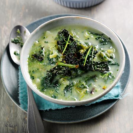 Creamy Cavolo Nero and Leek Soup with Cavolo Nero Crisps