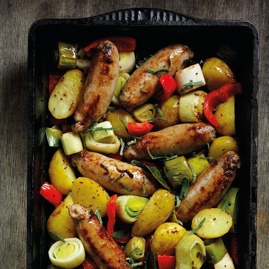 When its cold outside, nothing beats a hearty traybake. This Sausage, Leek & Potato Traybake is an easy crowd-pleaser – a great way to use up leftover vegetables and create a wholesome fuss-free dinner . Leeks add sweetness to the dish whilst providing vitamin C for healthy bones, teeth and skin, and natural prebiotic fibre for gut health, it’s comfort food that does you good..